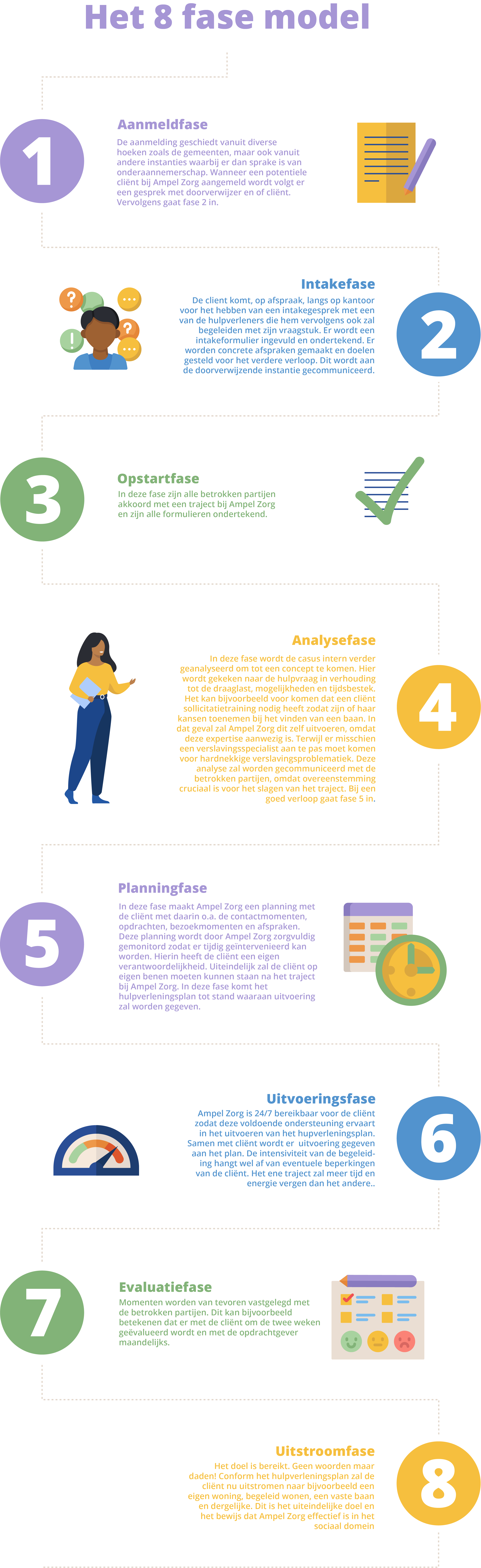Wij werken eclectisch. Dat houdt in dat wij aan de hand van de hulpvraag verschillende methodes en technieken op een adequate wijze toepassen. Rekening houdend met de culturele achtergrond en problematiek van de cliënt. De werkwijze is onderverdeeld in verschillende fases. Ampel Zorg werkt zoveel mogelijk evidence based zodat de client echt geholpen wordt. Bij een aanmelding wordt er een intakegesprek ingepland door ons. Dit gesprek vindt meestal plaats bij ons op kantoor. Wij bekijken elke cliënt als uniek geval en willen dan ook maatwerk leveren. Als er gaandeweg andere hulpvragen ontstaan kunnen wij trajecten aanpassen op de behoeften en doelen van de cliënt.